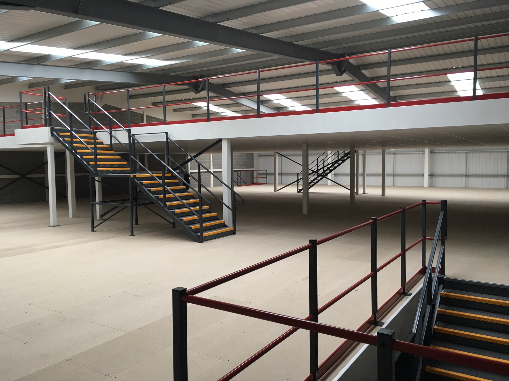 Industrial mezzanines floors Rugby can be designed and installed to withstand the weight of heavy machinery; to do this, the weight load of a mezzanine floor is worked out on a kilonewton per square metre basis (kN/m2).